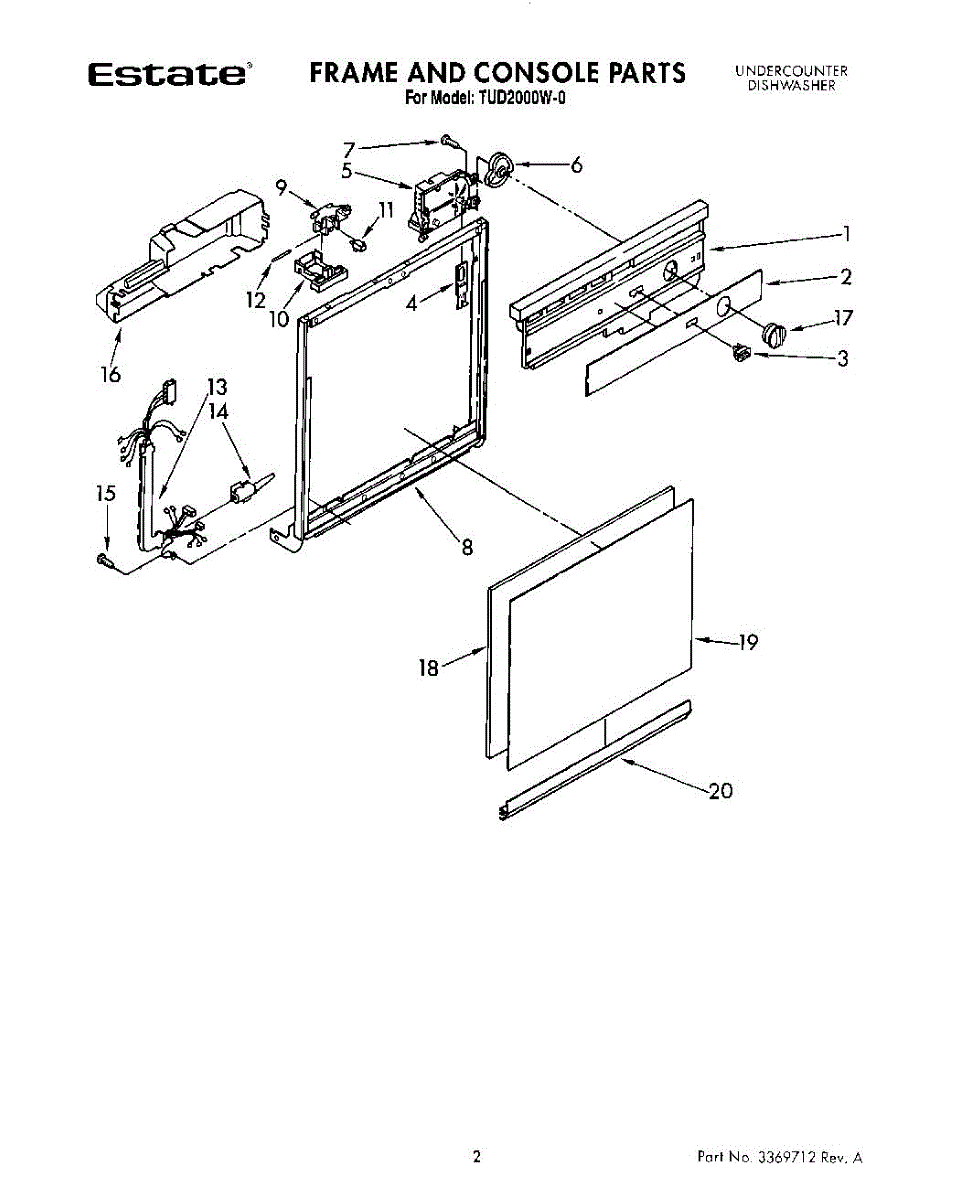 Parts for Whirlpool TUD2000W0: 01 - Frame And Console Parts
