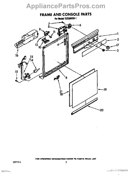 Parts for Whirlpool TUD2000W1: 02 - Frame And Console Parts