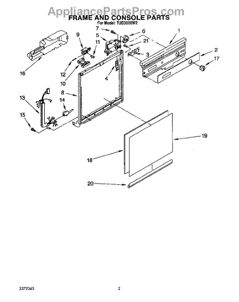 Parts for Whirlpool TUD3000W2: 02 - Frame And Console Parts