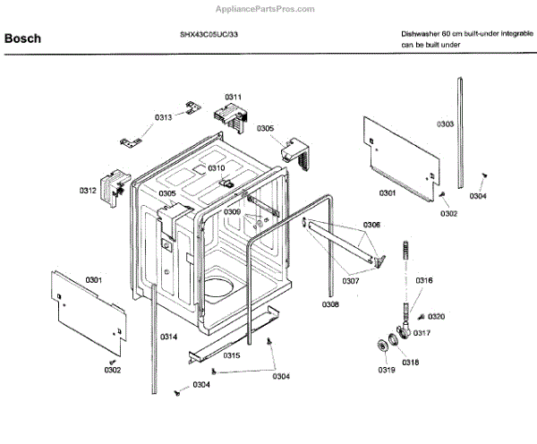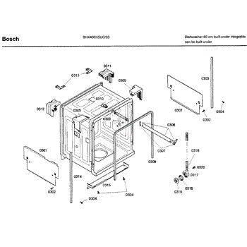 Parts for Bosch SHX43C05UC/33: Frame & Cover Parts