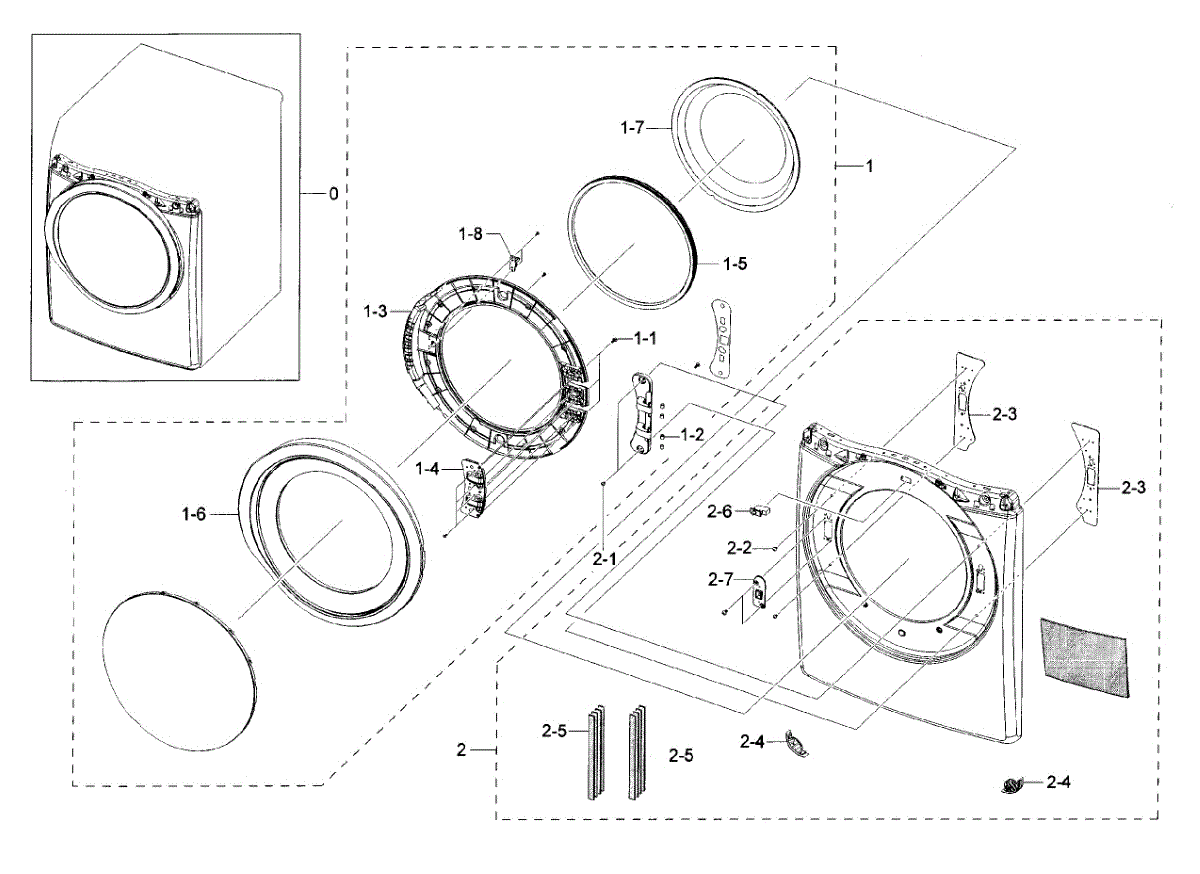 Parts for Samsung DV42H5200EW/A3-0000: Frame Front & Door Parts