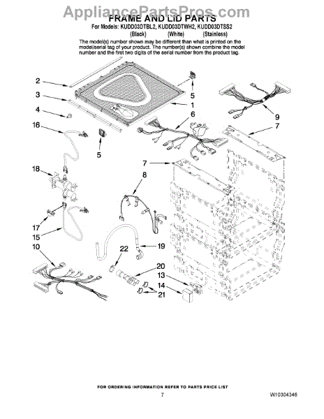 Parts for Kitchenaid KUDD03DTWH2: 05 - Frame And Lid Parts