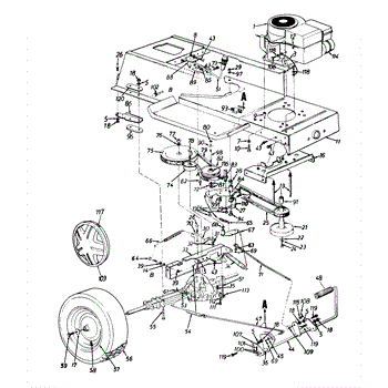 Parts for Mtd 135L667F141 / 1995: Frame Lower / Drive / Pedal Assembly / Wheels, Rear Parts