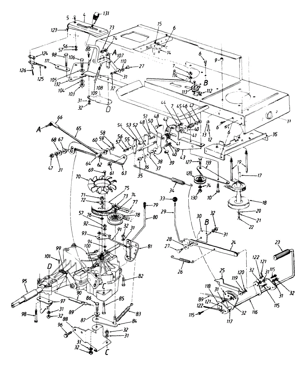 Parts for Mtd 133G699G023 / 1993: Frame, Lower / Pedal Assembly / Drive Parts