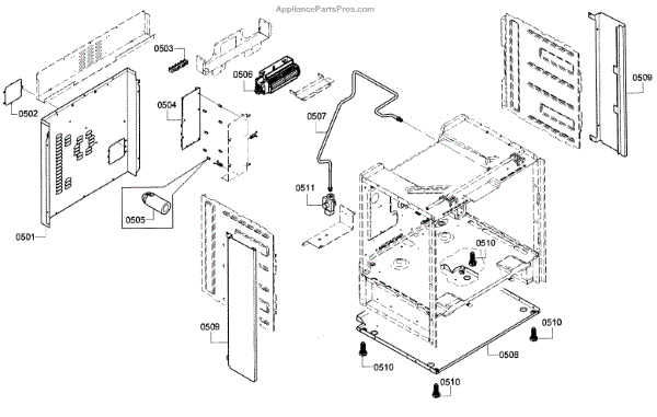 This rear housing cover with vents replaces the damaged or worn rear exterior panel to protect internal components and maintain proper airflow. It restores the appliance's rear enclosure and helps keep wiring and connectors shielded. What it does: