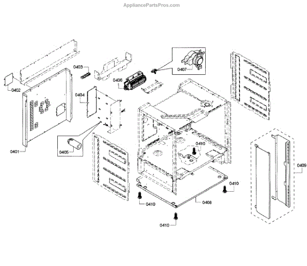 This rear housing cover with vents replaces the damaged or worn rear exterior panel to protect internal components and maintain proper airflow. It restores the appliance's rear enclosure and helps keep wiring and connectors shielded. What it does: