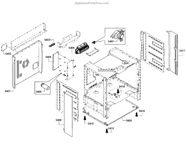 This rear housing cover with vents replaces the damaged or worn rear exterior panel to protect internal components and maintain proper airflow. It restores the appliance's rear enclosure and helps keep wiring and connectors shielded. What it does: