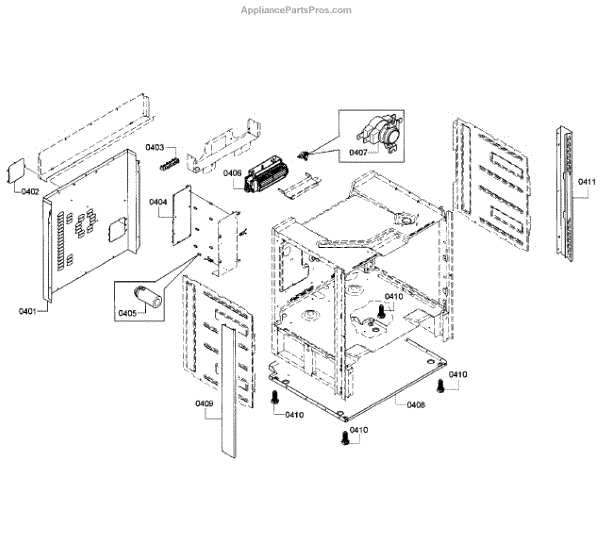 This rear housing cover with vents replaces the damaged or worn rear exterior panel to protect internal components and maintain proper airflow. It restores the appliance's rear enclosure and helps keep wiring and connectors shielded. What it does: