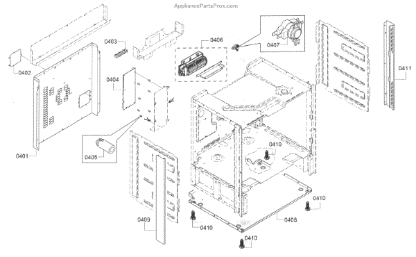 This rear housing cover with vents replaces the damaged or worn rear exterior panel to protect internal components and maintain proper airflow. It restores the appliance's rear enclosure and helps keep wiring and connectors shielded. What it does: