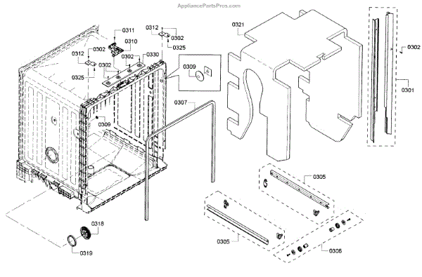 The Side Trim Strip is an OEM replacement part for Bosch dishwashers. It serves as an aesthetic finishing piece that lines both sides of the dishwasher interior tub. Causes of failure include normal wear from daily use, minor impacts during loading/unloading, and breakdown of plastic material over extended years. Symptoms of a worn side trim strip can include: