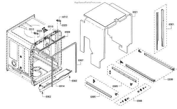 This protective cover sheet mounts to the appliance's frame to shield and support nearby components. Replacing a damaged or missing panel helps keep wiring and mechanisms protected and securely mounted, reducing vibration and preventing premature wear.