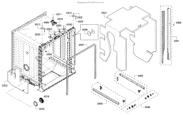 The Side Trim Strip is an OEM replacement part for Bosch dishwashers. It serves as an aesthetic finishing piece that lines both sides of the dishwasher interior tub. Causes of failure include normal wear from daily use, minor impacts during loading/unloading, and breakdown of plastic material over extended years. Symptoms of a worn side trim strip can include: