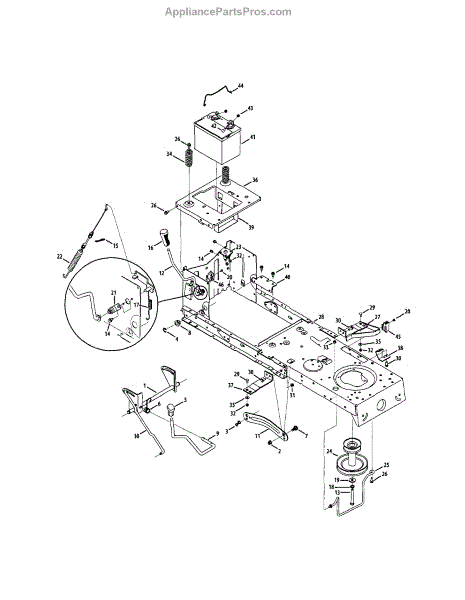 This lawn mower battery brace is compatible with Craftsman, MTD, Kmart, Troy-Bilt, and Yard-Man brands. The battery brace holds the battery in place creating a sturdy surface for the battery terminal to connect to the mower. Without a battery brace, the battery would be able to b around creating an unstable environment for the battery terminal connections, and could cause worse things like a battery leak or a fire. The more vibration the battery is exposed to the shorter its life will be, and an unsecured battery will void the warranty. If the battery terminals become too corroded, mix 1 cup of water and 1 teaspoon of baking soda until the baking soda is dissolved. Then pour the mixture over the battery terminals to dissolve any corrosion. Batteries are toxic, so when changing a battery out, properly disposing of it is recommended. When installing a new battery, place a small amount of petroleum jelly onto the battery terminals to prevent the battery from developing corrosion. After installing a new battery, make sure to securely mount the battery brace, to ensure the battery has a long life and is secure. This is a genuine OEM part sourced directly from the manufacturer and sold individually.