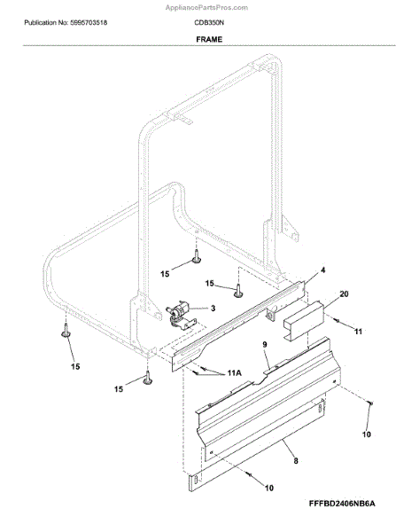 This lower toe plate mounts at the base of the dishwasher's front. It covers the gap beneath the door to protect internal components and restore a clean, finished look when the original kick panel is dented, cracked, or missing.