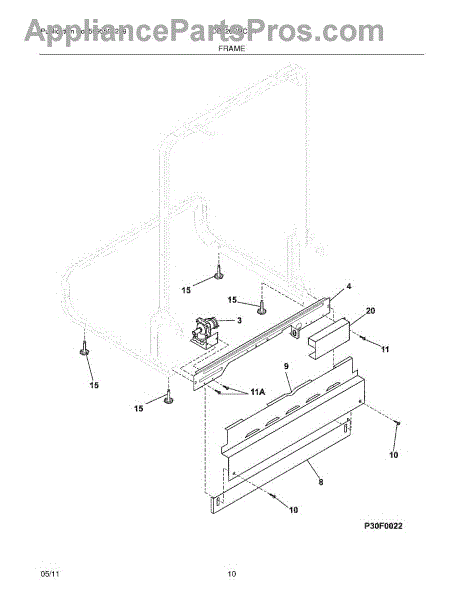 Parts for Frigidaire FDB520RHC0A: 11 - Frame Parts