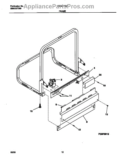 The Side Mount Kit is an OEM replacement part for Frigidaire dishwashers. It contains mounting brackets, screws, and other hardware required to securely install the dishwasher against cabinetry in a side-by-side configuration. Proper attachment is necessary for stability and safety during operation.