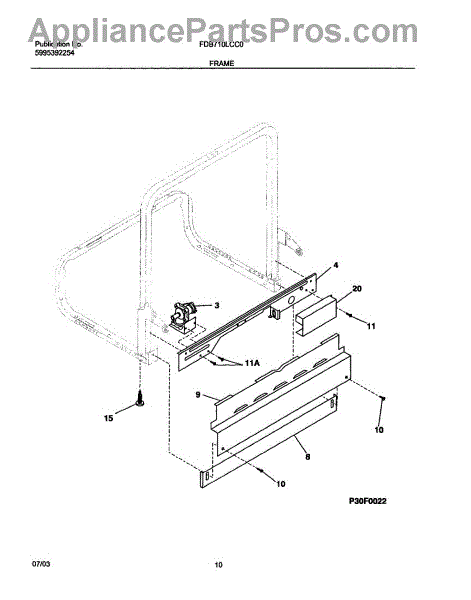 Parts for Frigidaire FDB710LCC0: 11 - Frame Parts