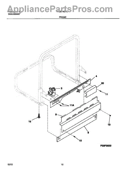 Parts for Frigidaire FDB740RCB0: 11 - Frame Parts