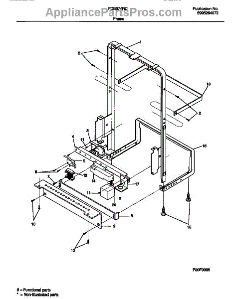 The Side Mount Kit is an OEM replacement part for Frigidaire dishwashers. It contains mounting brackets, screws, and other hardware required to securely install the dishwasher against cabinetry in a side-by-side configuration. Proper attachment is necessary for stability and safety during operation.