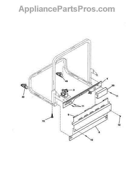 The Side Mount Kit is an OEM replacement part for Frigidaire dishwashers. It contains mounting brackets, screws, and other hardware required to securely install the dishwasher against cabinetry in a side-by-side configuration. Proper attachment is necessary for stability and safety during operation.