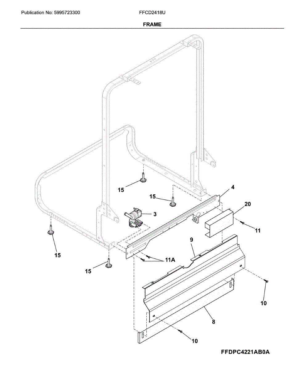 Bottom protective panel that installs beneath the dishwasher door. Replaces cracked, dented, broken, or missing kickplates from impact damage or wear.