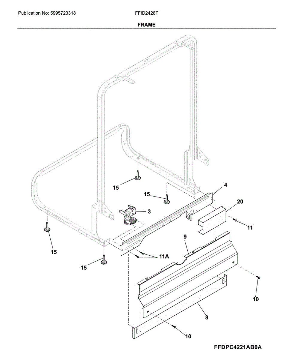 Bottom protective panel that installs beneath the dishwasher door. Replaces cracked, dented, broken, or missing kickplates from impact damage or wear.