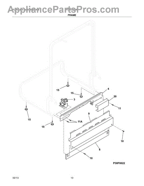 This kickplate assembly is the lower front panel at the base of the dishwasher. It restores a clean, finished look while helping shield internal components from kicks, dust, and splashes at floor level.