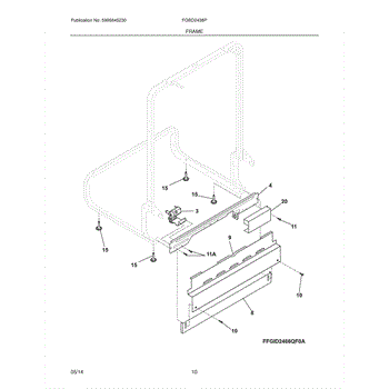 This kickplate assembly is the lower front panel at the base of the dishwasher. It restores a clean, finished look while helping shield internal components from kicks, dust, and splashes at floor level.