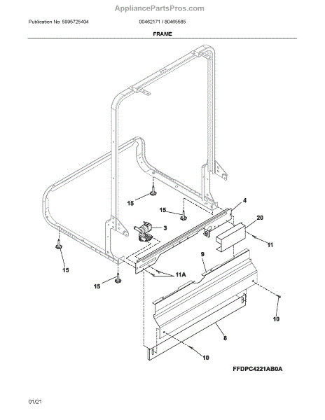 The Kickplate Assembly is an OEM replacement part for Frigidaire dishwashers. It forms the bottom protective barrier that prevents damage from kick impacts during loading and unloading.