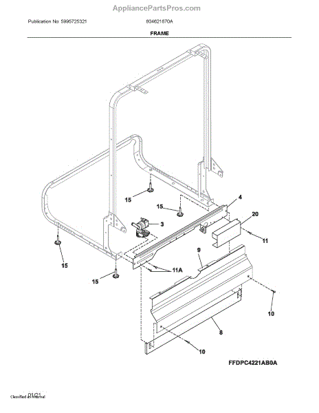 This kickplate assembly is the lower front panel at the base of the dishwasher. It restores a clean, finished look while helping shield internal components from kicks, dust, and splashes at floor level.