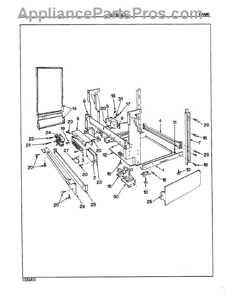 This factory screw secures appliance components to their mounting points. Replace missing, worn, or stripped hardware to restore a tight fit, proper alignment, and quieter operation across the affected assembly.