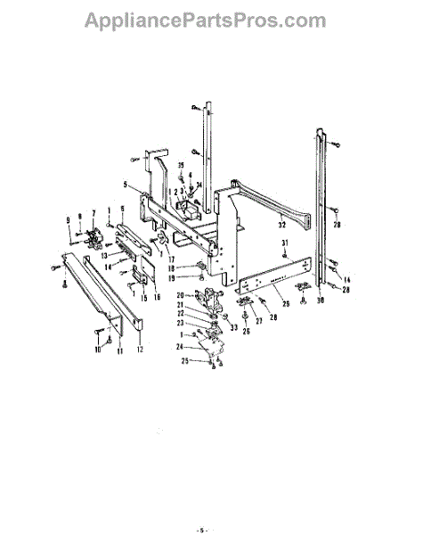 This factory screw secures appliance components to their mounting points. Replace missing, worn, or stripped hardware to restore a tight fit, proper alignment, and quieter operation across the affected assembly.