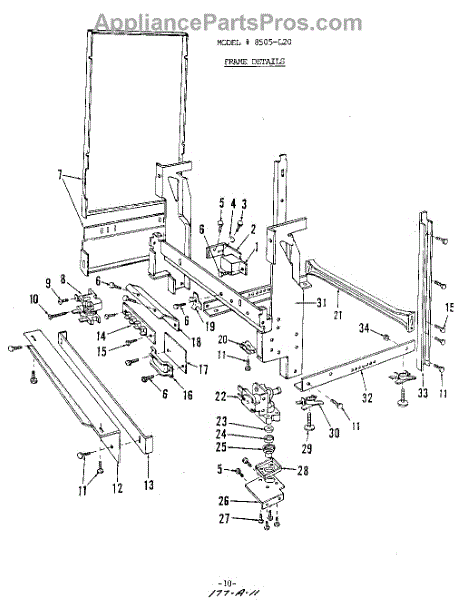 This factory screw secures appliance components to their mounting points. Replace missing, worn, or stripped hardware to restore a tight fit, proper alignment, and quieter operation across the affected assembly.