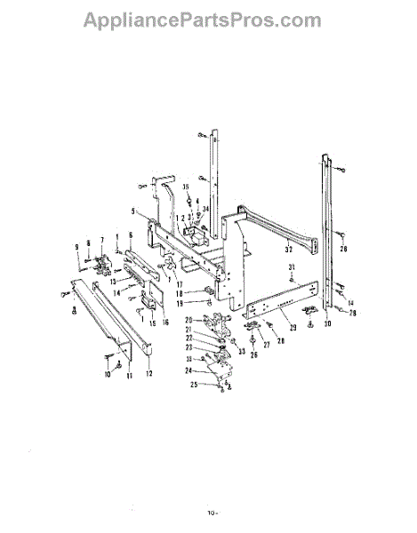 This factory screw secures appliance components to their mounting points. Replace missing, worn, or stripped hardware to restore a tight fit, proper alignment, and quieter operation across the affected assembly.