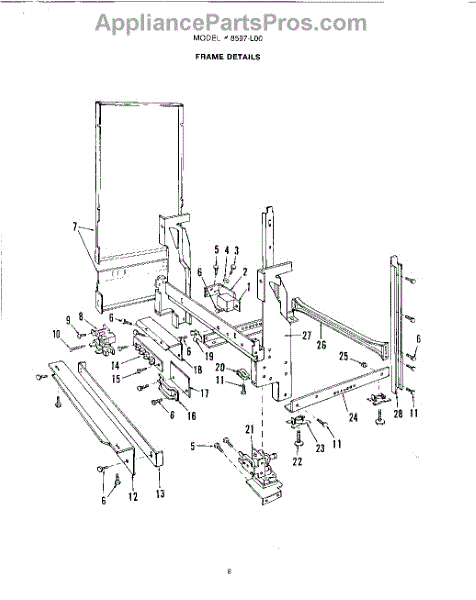 This factory screw secures appliance components to their mounting points. Replace missing, worn, or stripped hardware to restore a tight fit, proper alignment, and quieter operation across the affected assembly.