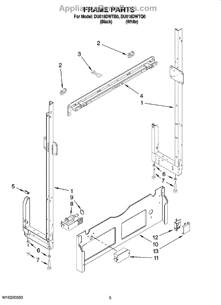 Parts for Whirlpool DU018DWTQ0: 04 - Frame Parts
