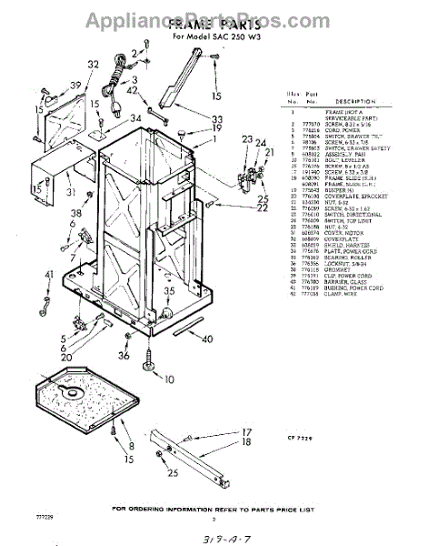 Parts for Whirlpool SAC250W3: 02 - Frame Parts