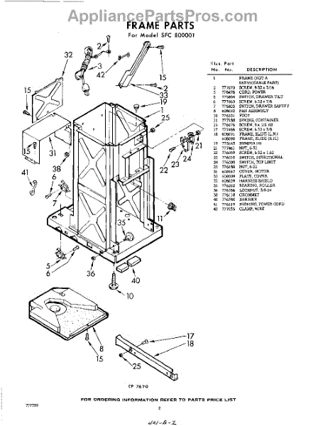 Parts for Whirlpool SFC800001: 02 - Frame Parts