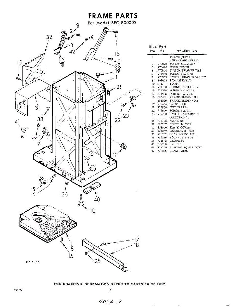 Parts for Whirlpool SFC800002: 02 - Frame Parts