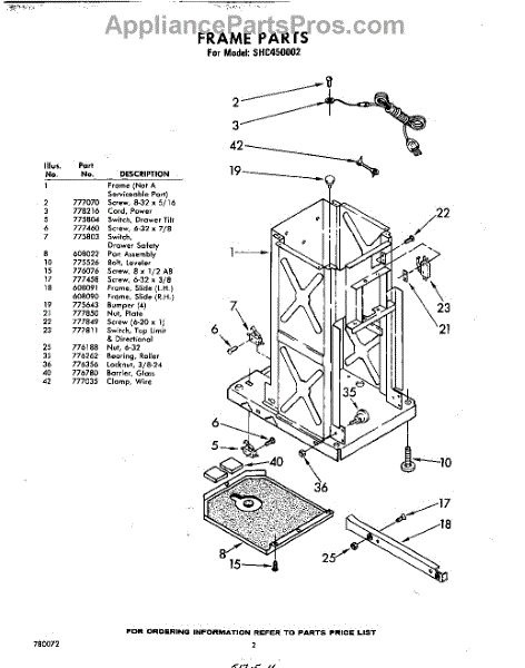 Parts for Whirlpool SHC450002: 02 - Frame Parts