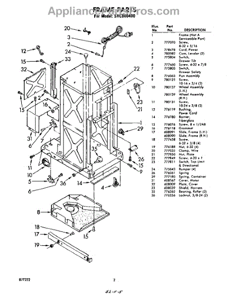 Parts for Whirlpool SHC800400: 02 - Frame Parts