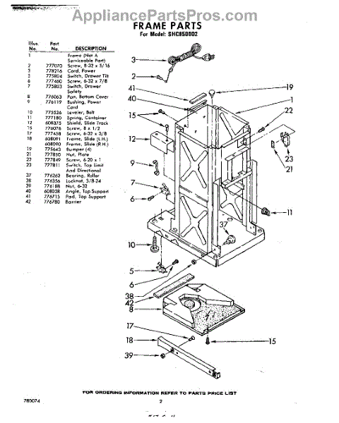 Parts for Whirlpool SHC850002: 02 - Frame Parts