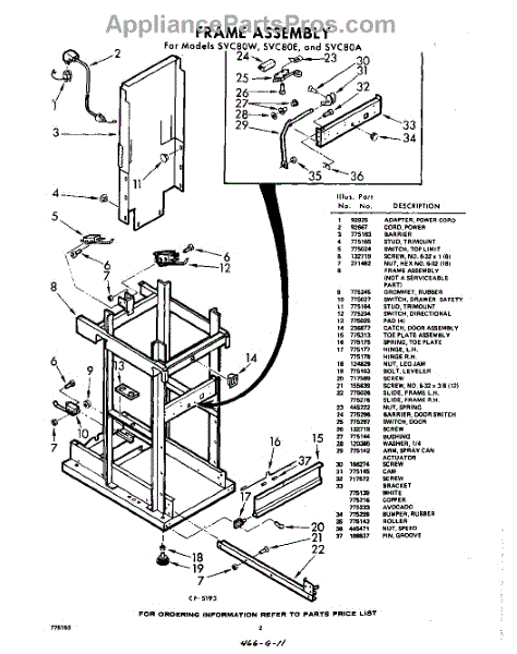 Parts for Whirlpool SVC80W: 02 - Frame Parts
