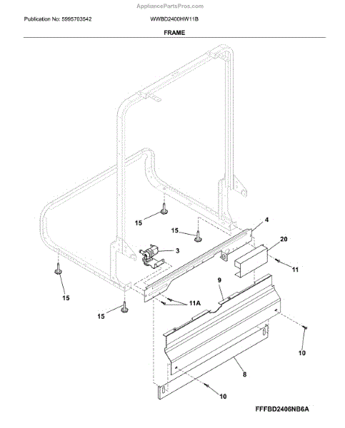 Parts for White Westinghouse WWBD2400HW11B: Frame Parts