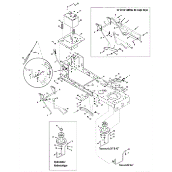 Mounting bracket assembly for lawn tractors. Secures and connects components to the frame. Replace if cracked, bent, or broken to restore stability.