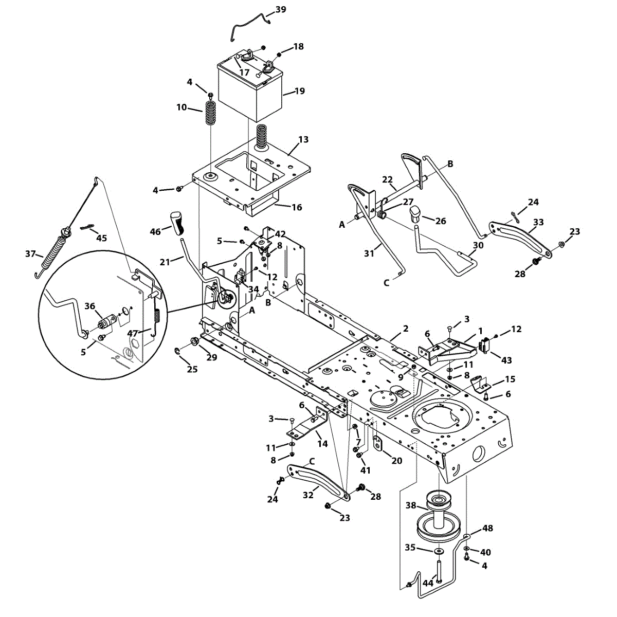 Secures the battery in place on your lawn tractor. Replace this brace if it's cracked, broken, or missing to prevent battery movement and ensure stable connections.