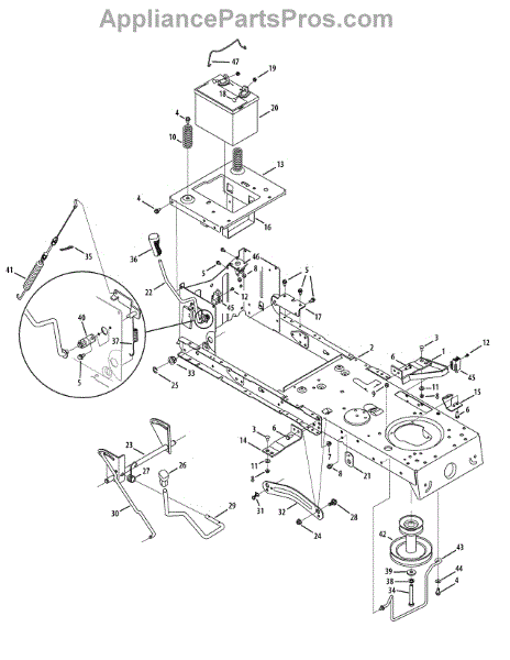 This lawn mower battery brace is compatible with Craftsman, MTD, Kmart, Troy-Bilt, and Yard-Man brands. The battery brace holds the battery in place creating a sturdy surface for the battery terminal to connect to the mower. Without a battery brace, the battery would be able to b around creating an unstable environment for the battery terminal connections, and could cause worse things like a battery leak or a fire. The more vibration the battery is exposed to the shorter its life will be, and an unsecured battery will void the warranty. If the battery terminals become too corroded, mix 1 cup of water and 1 teaspoon of baking soda until the baking soda is dissolved. Then pour the mixture over the battery terminals to dissolve any corrosion. Batteries are toxic, so when changing a battery out, properly disposing of it is recommended. When installing a new battery, place a small amount of petroleum jelly onto the battery terminals to prevent the battery from developing corrosion. After installing a new battery, make sure to securely mount the battery brace, to ensure the battery has a long life and is secure. This is a genuine OEM part sourced directly from the manufacturer and sold individually.