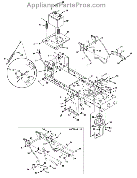 This replacement part is a shaft assembly lift. It attaches to the lift link arms. This allows the deck of the machine to be raised or lowered according to the desired settings. If the part has become damaged from impact or because of general wear and tear and can no longer adjust the deck of the lawn mower, it should be replaced. Be sure the engine is in the stationary position and is powered down before attempting to replace this part.This is a genuine OEM replacement part manufactured by MTD. This part is sold individually.