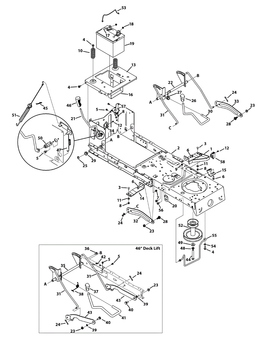 This replacement part is a shaft assembly lift. It attaches to the lift link arms. This allows the deck of the machine to be raised or lowered according to the desired settings. If the part has become damaged from impact or because of general wear and tear and can no longer adjust the deck of the lawn mower, it should be replaced. Be sure the engine is in the stationary position and is powered down before attempting to replace this part.This is a genuine OEM replacement part manufactured by MTD. This part is sold individually.