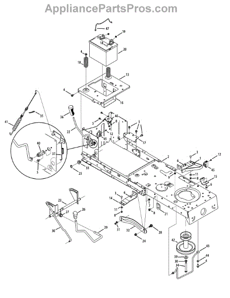 This lawn mower battery brace is compatible with Craftsman, MTD, Kmart, Troy-Bilt, and Yard-Man brands. The battery brace holds the battery in place creating a sturdy surface for the battery terminal to connect to the mower. Without a battery brace, the battery would be able to b around creating an unstable environment for the battery terminal connections, and could cause worse things like a battery leak or a fire. The more vibration the battery is exposed to the shorter its life will be, and an unsecured battery will void the warranty. If the battery terminals become too corroded, mix 1 cup of water and 1 teaspoon of baking soda until the baking soda is dissolved. Then pour the mixture over the battery terminals to dissolve any corrosion. Batteries are toxic, so when changing a battery out, properly disposing of it is recommended. When installing a new battery, place a small amount of petroleum jelly onto the battery terminals to prevent the battery from developing corrosion. After installing a new battery, make sure to securely mount the battery brace, to ensure the battery has a long life and is secure. This is a genuine OEM part sourced directly from the manufacturer and sold individually.